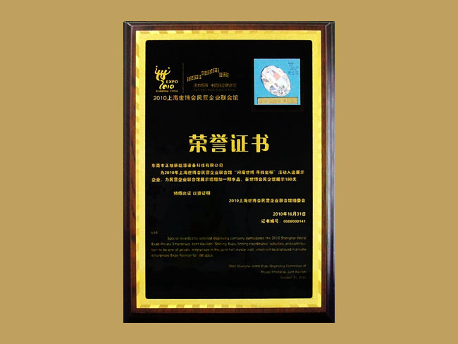 2010上海世博會榮譽證書
