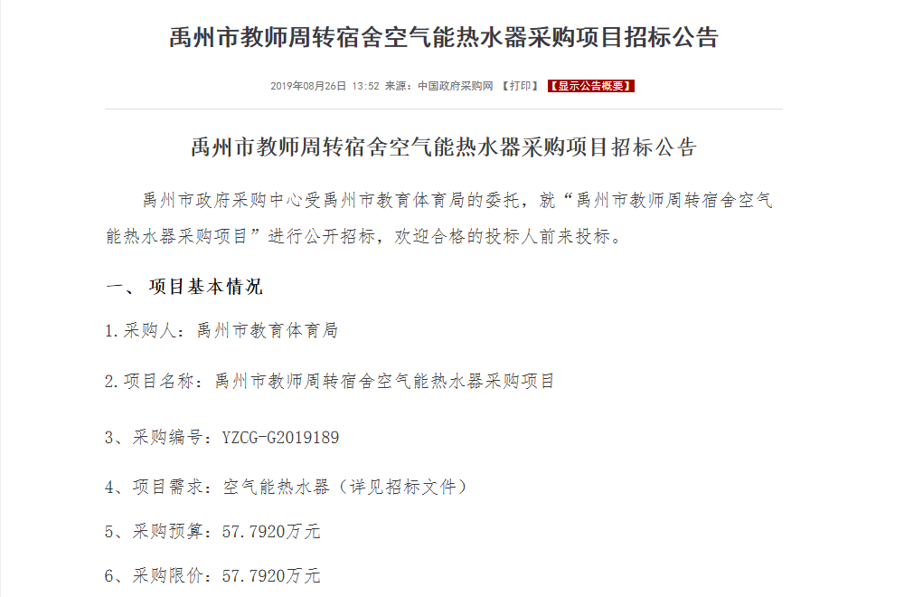 【公告】禹州市教師宿舍空氣能熱水器項(xiàng)目招標(biāo),正旭廠家積極投標(biāo)