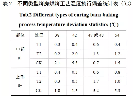 在溫度達到38℃、42℃、47℃(中部葉)和48℃(上部葉)、54℃時,測定實際溫濕度與目標溫濕度的偏差。