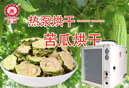 熱泵烘干工藝生產的苦瓜干的外觀質量要明顯優于熱風烘干,產品色澤接近新鮮苦瓜。也有人使用微波烘干機對苦瓜進行烘干,優點是速度更快,缺點時脫水速度太快,導致材料變形塌架,影響口感及外觀。綜合來說,苦瓜空氣能熱泵烘干機更接近太陽曬的效果。
