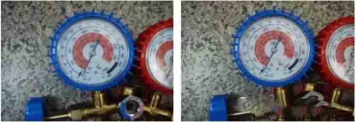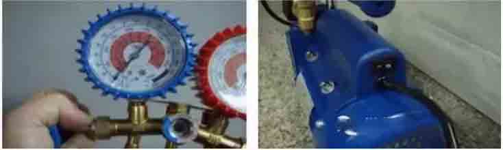 11、 確認抽空操作結束后,快速拆下加氟管及壓力表,然后重新完全打開小閥門后回旋半圈。