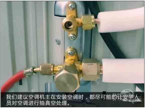 另外,R410A的機器由于系統制冷劑標量要求精確,安裝時必須進行抽真空操作。