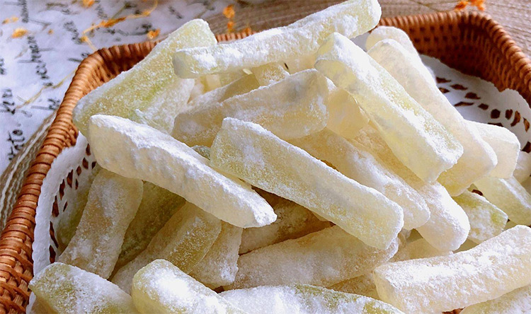 冬瓜糖,顧名思義是一種冬瓜制品,它是將新鮮的冬瓜經(jīng)過一系列處理工序最終制成的一種甜食。冬瓜糖口感細(xì)膩綿柔,色澤潔白,還具有冬瓜特有的清香。冬瓜本身具有清熱解暑的功能,冬瓜糖也不例外,閑來無事,可以把冬瓜糖作為家中常備小零食。