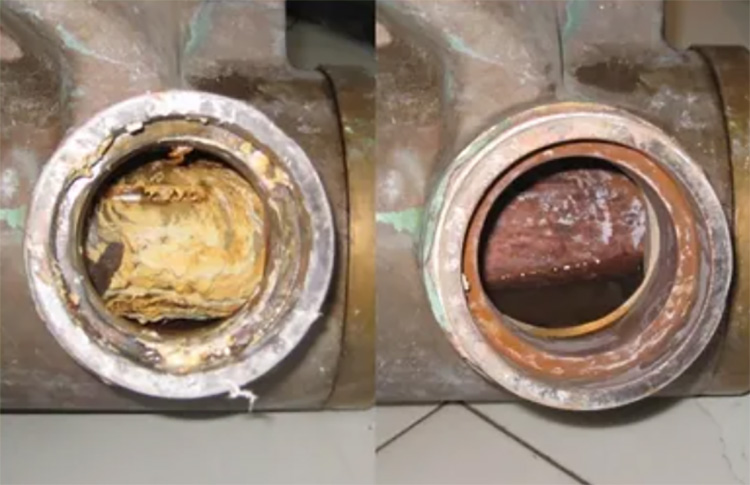 熱泵系統在制熱過程中,隨著熱水不斷蒸發和濃縮,水中鈣鎂離子會發生化學反應,產生難溶性固體沉淀物質,并粘附在換熱器管壁、熱水管道內壁、水箱內膽等位置,形成阻礙熱傳遞的“水垢”。由此可知水垢形成的兩個條件,一是水溫達到水垢生成的臨界點60℃以上,二是水質差、含鈣、鎂離子等重金屬離子較多。