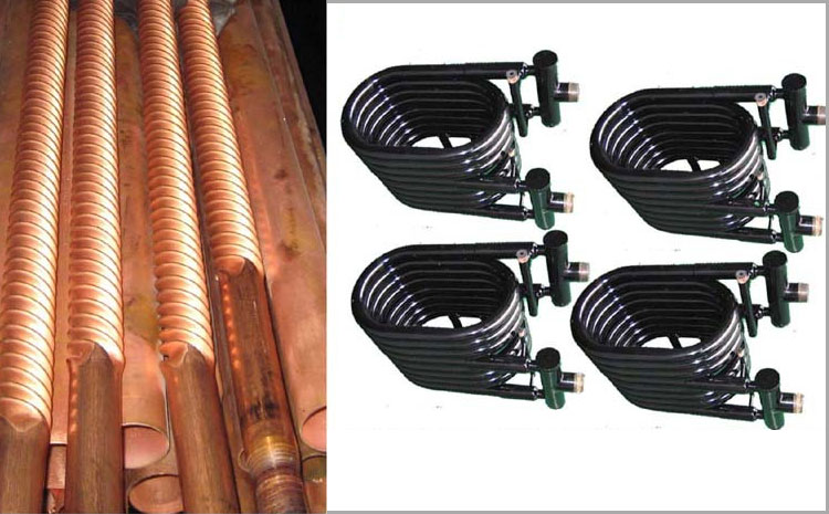 首先是換熱效率方面。換熱的前提是材料的導熱性能,銅的導熱系數是400W/mK,不銹鋼導熱系數16.2W/mK,兩者相差了大約25倍之多,從這個角度來講,銅管盤的導熱性明顯強于不銹鋼盤管。盡管目前不銹鋼盤管可以通過減薄壁厚的方式增強其導熱性能,但也只是縮小了與銅盤管總體傳熱系數的差距而已。