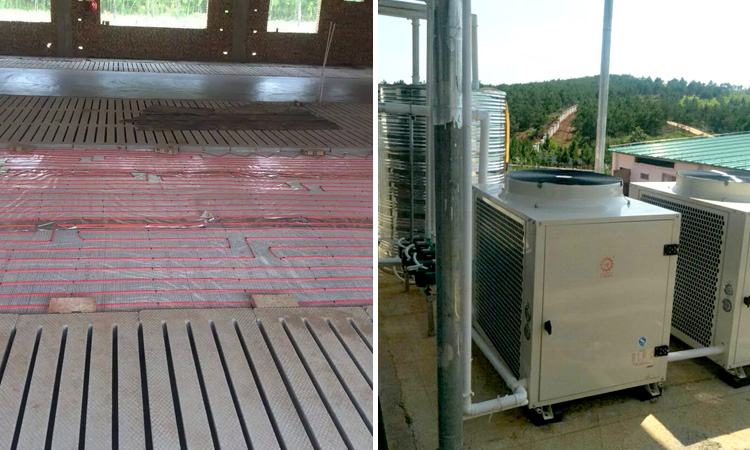 在國家大力發展現代養殖業的政策推動及煤改清潔能源政策的要求下,各養殖場取締燃煤鍋爐、改用清潔取暖設備已成大勢所趨。在此過程中,以正旭空氣源采暖熱泵為熱源的地暖供熱方式,憑借安全、環保、節能、自動化運行等諸多優勢,在豬場采暖中受到了廣泛的歡迎。