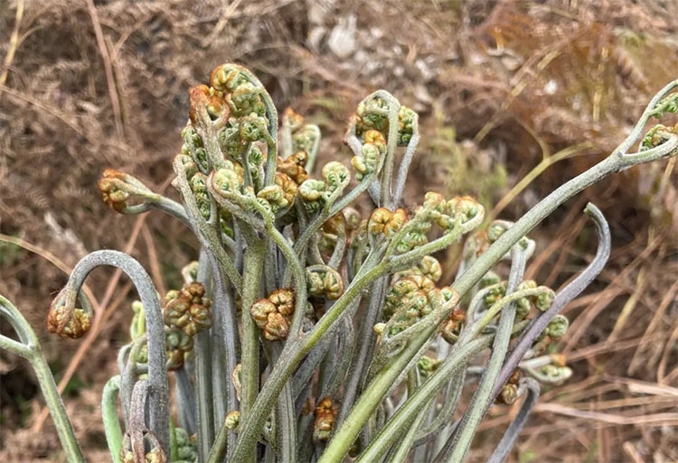 蕨菜又名拳頭菜,是林地、灌木叢常見的蕨類植物,根狀莖長而粗壯,表面被黃色茸毛,隨著生長會逐漸脫落。蕨菜分布于中國各地,主要長于長江流域及以北地區,也分布在世界其他熱帶及溫帶地區,生長在山地陽坡及森林邊緣陽光充足的地方。從蕨菜根狀莖提取的淀粉稱作蕨粉,可供食用,根狀莖的纖維還可制成繩纜,嫩葉可食稱作蕨菜,蕨菜全株可以入藥,對人體健康有較大益處。